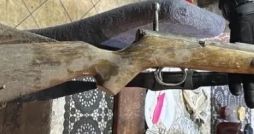 Prilikom pretresanja pronađena su tri pakovanja sa sadržajem biljne materije koja svojim izgledom asocira na drogu, dva pakovanja sa sadržajem bijele materije koja svojim izgledom asocira na drogu, određeni broj sjemenki koje svojim izgledom asociraju na sjemenke droge, vaga za precizno mjerenje sa tragovima bijele materije koja svojim izgledom asocira na drogu, puška, pet patrona i četiri metka.