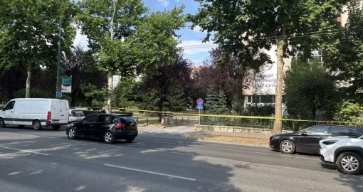Dio parka kod Druge gimnazije u Sarajevu ograđen je žutom trakom, a u blizini se nalazi nekoliko policijskih službenika.