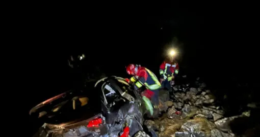 Vatrogasci su po dolasku na terene utvrdili da se u vozilu nalaze dvije mlađe osobe, od kojih je jedna bila bez svijesti i prikliještena deformisanom karoserijom vozila.