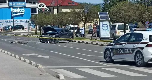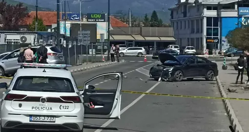 Sudar je bio žestok. Kako se može vidjeti na fotografijama sa mjesta događaja, na automobilima je pričinjena veća materijalna šteta, a dijelovi vozila su razasuti po asfaltu.