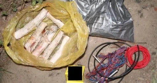 Također je pronađena i bijela valjkasta materija koja asocira na eksploziv, osam električnih detonatorskih kapisli, detonatorski štapini, tzv. fantomke, dijelovi maskirne uniforme, pancirni prsluci, opasači sa futrolama, noževi, veća količina lovačke, pištoljske i druge municije raznih kalibara (preko hiljadu komada), radio veza, blinkeri i rotacije, baterijske lampe.