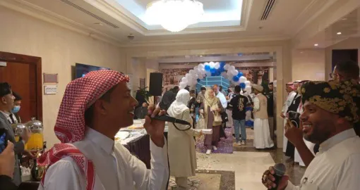 Hadžije su, tradicionalno, na ulazima u hotel dočekane saudijskim slasticama, uz zemzem vodu, tekbire i ilahije.