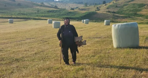 Muž je moj ovo radio, ali je umro. Slavko. Nije Jovan, Slavko se zvao. Bio zlatan čovjek. Zlatan. Volio je on pričati s ljudima, a bio pametan. Umro ima deset mjeseci. Im’o na plućima ono zlo. Nije umro dolje, nego ovdje, u selu. I onda sam ja preuzela. A šta ću? Neko mora. Imam sina i snahu. Oni kose po cijeli dan. Moraš pomoći.