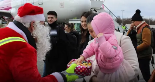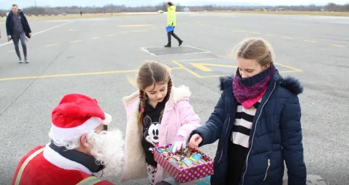 Avioni su dočekivani i parkirani na uobičajen način, dok je praznični ambijent dodatno obogatio iskustvo putnika, posebno najmlađih. Nakon slijetanja, djeci su podijeljeni slatkiši, što je dodatno doprinijelo toploj i pozitivnoj atmosferi u aerodromskom prostoru.