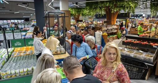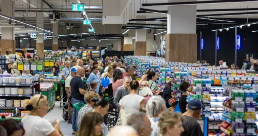 Kupce očekuje prošireni prehrambeni segment sa bogato opremljenom svježom zonom, modernim food courtom, slastičarnom, pekarom, mesnicom i gastro odjelom s pripremom jela pred kupcima. Novo dizajnirani odjel voća i povrća naglašava posvećenost kvalitetu i zdravijim izborima.