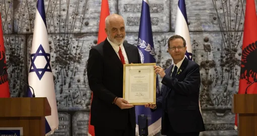 Premijeru Albanije Ediju Rami u Izraelu je uručena Predsjednička medalja časti koju mu je dodijelio predsjednik Izraela Isaac Herzog.