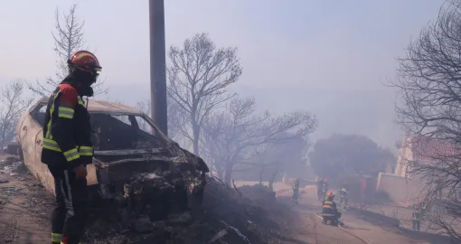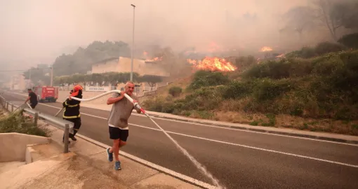 Vatrogasci - s kopna i mora - spašavaju "kuću po kuću" kako bi spriječili veće razmjere požara.