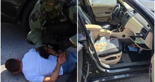 Policija je objavila i fotografiju privođenja, u kojem su učestvovale specijalne policijske snage, te automobila kojim su se koristili lažni policajci, a u kojem su bile razbacane novčanice.