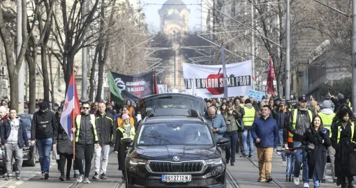 U protestu je učestvovao dio studenata u blokadi, srednjoškolci i građani, a bili su pozvani i dekani osam fakulteta na kojima se obrazuju nastavnici i profesori zbog pritisaka na zaposlene u školstvu koji su podržali studentske zahtjeve, pšrenosi Anadolija.