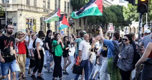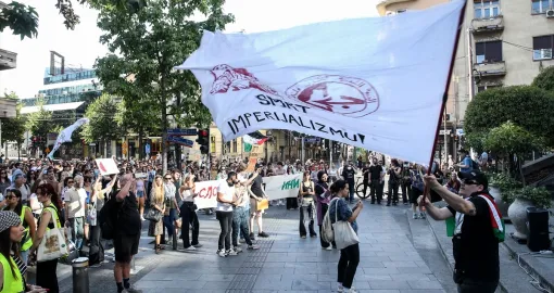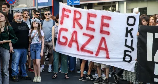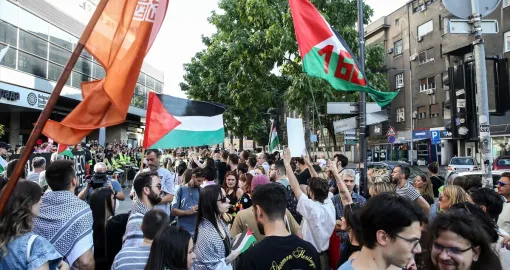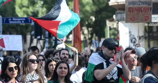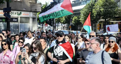 Skup podrške Palestini i protest protiv izvoza oružja u Izrael održan je u nedjelju u centru glavnog grada Srbije, Beograda.