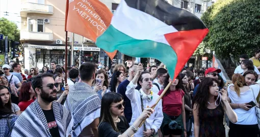 Nakon što su se sa zastavama Palestine okupili, studenti su u povorci išli ka centru i Trgu republike.
