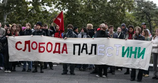 Oko dvije stotine demonstranata okupilo se ispred kule Skyline u Beogradu. Okupljeni su nosili zastave Palestine i uzvikivali propalestinske slogane.