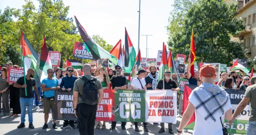 Skup u Podgorici počeo je minutom šutnje, a Mato Kankaraš, ispred Pokreta solidarnosti s Palestinom, u izjavi za Anadoliju, kazao je da je današnji skup organizovan s ciljem da se upute jasne poruke vlastima Crne Gore.
