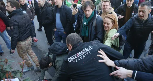 Grupa građana koja je u četvrtak ujutro okupila ispred ulaza u zgradu Skupštine grada Beograda ušla je u fizički obračun sa obezbeđenjem. Do sukoba je došlo kada su građani pokušali da sklone zaštitnu ogradu ispred zgrade, javlja Anadolu.