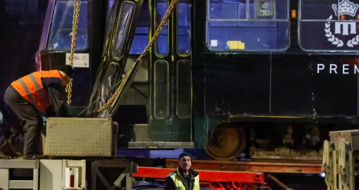 Tramvaj koji je danas pri velikoj brzini izletio iz šina i usmrtio jednog mladića (23), a nekoliko ljudi povrijedio, uklonjen je s ceste.
