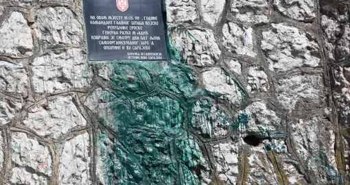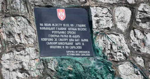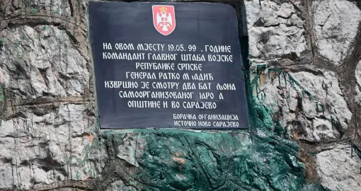 Spomen-ploča ratnom zločincu Ratku Mladiću, koja se nalazi na Vracama, ponovo je uništena nakon što je na nju bačena zelena farba. Ovaj incident, koji se dogodio jutros, izazvao je snažnu reakciju, s obzirom na to da ploča budi ružne uspomene kod mnogih građana Sarajeva i šire regije. Na mjesto događaja ubrzo je stigla velika policijska snaga, a uslijedila je i reakcija radnika preduzeća "Rad" iz Istočnog Sarajeva koji su odmah počeli čistiti oštećenu ploču.