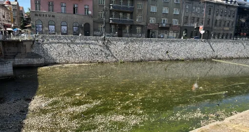 Rijeka Miljacka izgleda zabrinjavajuće, uslijed visokih temperatura koje se u posljednje vrijeme bilježe u Sarajevu, ali i cijeloj Bosni i Hercegovini.