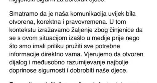 - Čitava ta komunikacija je bila površna. Tek kada smo dali u medije, stigao je pisani odgovor gdje piše da se radi o mušicama iz kanalizacije, da su platili čišćenje šahtova, te da se djeca vrate u vrtić u kojem je ostala poneka mušica, komentirali su roditelji i dodali da papir koji potvrđuje higijenske uslove za boravak djece nisu dobili.
