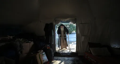 Okružen najlonskim zidovima šatora za raseljene osobe, 80-godišnji palestinski umjetnik Mohammed Abduljalil Zemlut crtanjem stvara umjetnička djela, prkoseći razaranju koje ga okružuje u Pojasu Gaze.