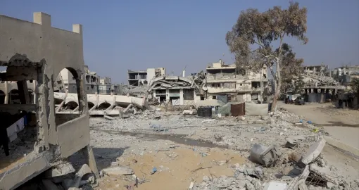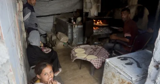 Raseljene palestinske porodice sklonile su se u ruševine džamije "Usama bin Zayd" u Khan Younisu na jugu Pojasa Gaze, nakon što su izraelski napadi uništili njihove domove i školu u kojoj su ranije potražile utočište, ostavljajući ih bez ikakve alternative usred hladnog vremena i kontinuiranih napada.