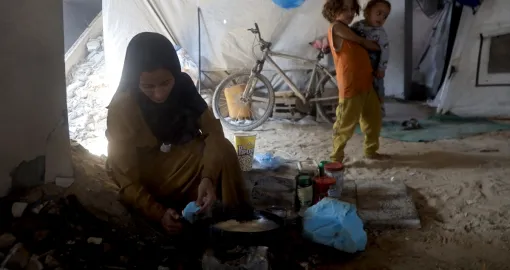 Alternativna skloništa ostaju nedostupna zbog izraelskih ograničenja na ulazak humanitarne pomoći, uključujući materijale za izgradnju skloništa poput šatora i mobilnih kućica.