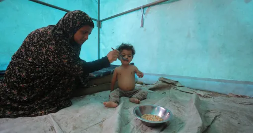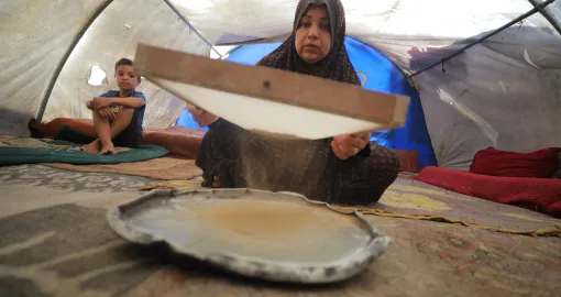 Palestinci koji žive u improviziranim šatorima u izbjegličkom kampu Nuseirat pokušavaju preživjeti izraelsku blokadu i politiku gladovanja kuhajući odbačene naimirnice u Deir al-Balahu.