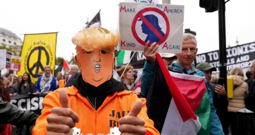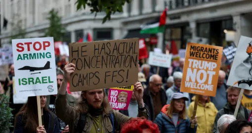 Hiljade građana protestovalo je u Londonu u srijedu protiv američkog predsjednika Donalda Trumpa, skandirajući propalestinske slogane u znak solidarnosti s Pojasom Gaze.