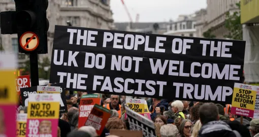 Na nekim od transparenata pisalo je: "Migranti dobrodošli, Trump nije dobrodošao" i "Ne rasizmu, ne Trumpu".
