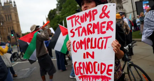 "Donalde Trumpe, ne možeš se sakriti, optužujemo te za genocid" i "Keir Starmer, sram te bilo", skandirali su demonstranti.