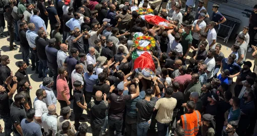 RAMALLAH, PALESTINA - 13. JULI 2025.Hiljade Palestinaca u nedjelju je prisustvovalo dženazi dvojici mladića koje su ubili ilegalni izraelski doseljenici u okupiranom gradu Sinjilu na Zapadnoj obali, sjeveroistočno od Ramallaha.Jedna od žrtava, 23-godišnji Saif al-Din Kamel Abdul Karim Muslat, imao je američko državljanstvo i ilegalni doseljenici su ga pretukli na smrt. Drugi, 23-godišnji Mohammed al-Shalabi, umro je nakon što je upucan u prsa. Palestinsko Ministarstvo zdravstva potvrdilo je oba ubistva u petak. (Hisham K. K. Abu Shaqra - Anadolu Agency)/
