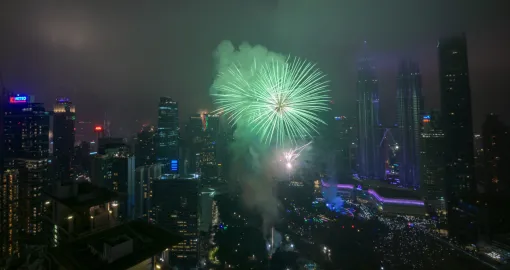 Hong Kong je priredio "Simfoniju svetlosti" koja je obasjala nebodere, dok su sat vremena kasnije (u 18:00) u novu godinu ušli Vijetnam, Tajland i Kambodža.