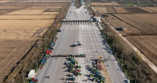 Farmeri u Grčkoj blokirali su autoput Atina - Solun koristeći traktore u znak protesta, čime su potpuno obustavili saobraćaj na jednoj od najprometnijih dionica u zemlji.