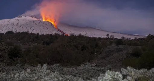 Nova erupcija Etne počela je u popodnevnim satima 8. februara. Erupciju karakteriše lava koja teče s oko 3.000 metara visoke planine iz južnog kratera Bocca Nuova.