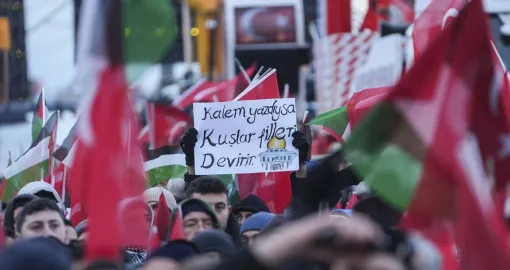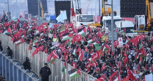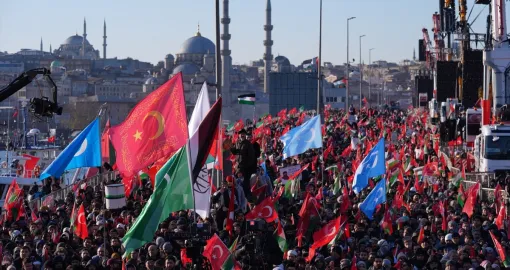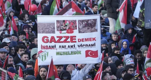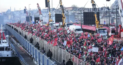 Oko 520.000 ljudi okupilo se rano u četvrtak, na Novu godinu, na istanbulskom Galata mostu na masovnom maršu podrške Palestini, organiziranom pod okriljem Saveza za humanost i Platforme nacionalne volje, javlja Anadolija.