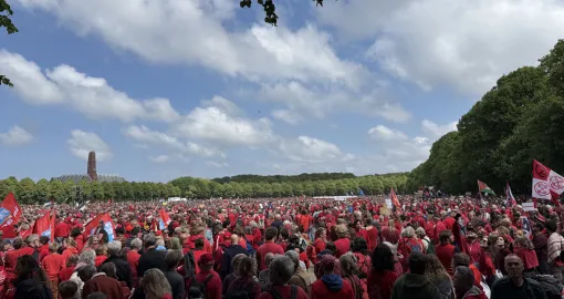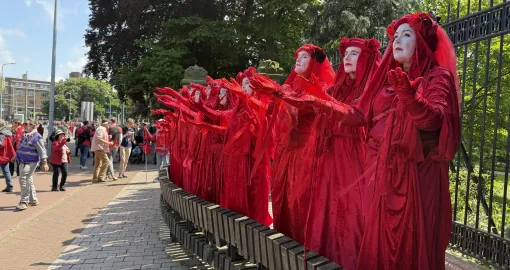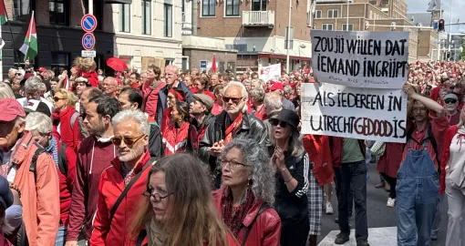 Demonstranti su se okupili na trgu noseći crvenu odjeću koja simbolizira crvenu liniju. Više od 80 nevladinih organizacija prisustvovalo je događaju, uključujući holandske ogranke mnogih međunarodnih nevladinih organizacija, kao što su "Human Rights Watch" i "Amnesty International", kao i lokalne organizacije za ljudska prava, grupe za podršku Palestini, ženska, dječja i humanitarna udruženja.