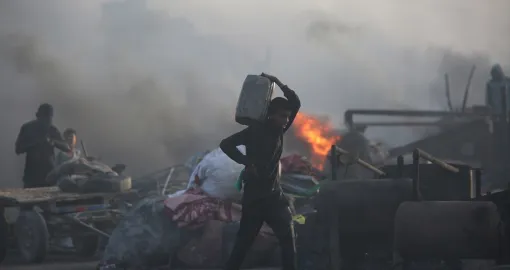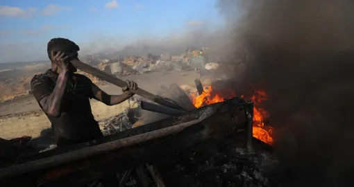 Palestinci koji žive u kampu Nusairat proizvode gorivo spaljivanjem otpadne plastike i drveta koje sakupljaju.