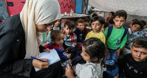 (FOTO) Palestinski učitelji u Gazi pretvaraju svoje domove u učionice mira