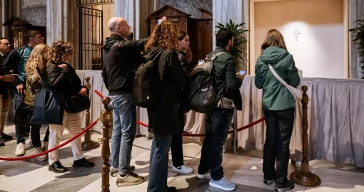 Ispred ulaza u baziliku mogu se vidjeti dugi redovi, a veliki broj vjernika, uključujući cijele porodice, strpljivo čeka svoj red kako bi posjetili grob i odali počast preminulom poglavaru Katoličke crkve.