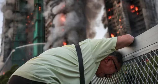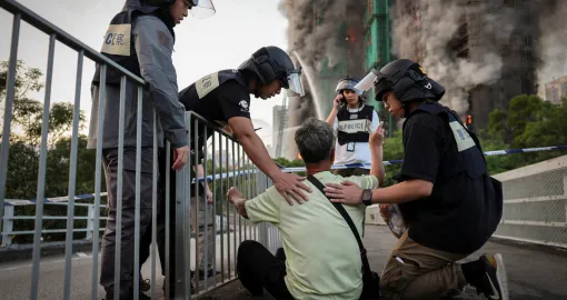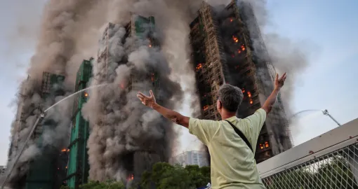 Wongova nesreća, s podignutim rukama u očaju i suzama dok stoji pred prizorom koji je postao najsmrtonosniji požar u Hong Kongu od 1948. godine, zabilježena je na fotografiji Reutersa koja je postala viralna i simbol stradanja.