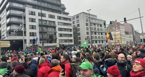 Na poziv svih sindikata u Belgiji, oko 60.000 ljudi okupilo se ispred Sjeverne željezničke stanice u centru Brisela.