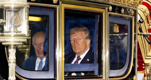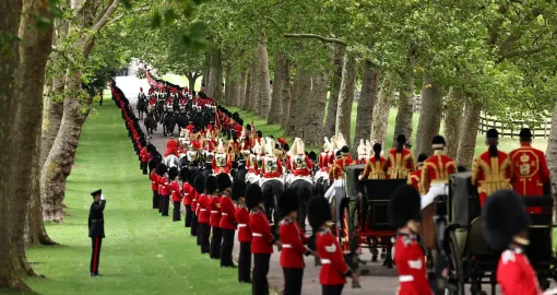 U nastavku programa uslijedila je svečana kraljevska povorka. U prvoj, irskoj državnoj kočiji, vozili su se kralj Charles i predsjednik Trump. Kraljica Camilla i Melania Trump bile su u škotskoj državnoj kočiji, dok su princ i princeza od Walesa sjedili u trećoj zajedno s američkim ambasadorom i njegovom suprugom. Četvrta i peta kočija bile su rezervisane za visoke američke zvaničnike, među kojima su državni sekretar Marco Rubio i specijalni izaslanik Steve Witkoff.