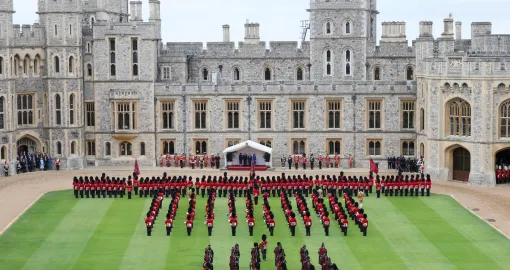 Povorka je prošla kroz kapiju Georgea IV i ušla u dvorište Windsora, gdje je Trumpa dočekala počasna garda britanske vojske. Nakon intoniranja himni dviju država, kralj Charles i američki predsjednik izvršili su smotru garde.