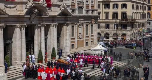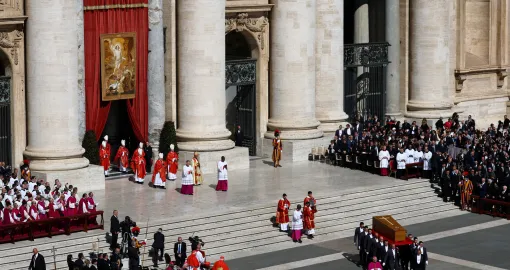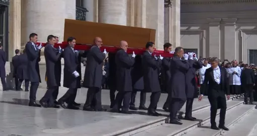 Povorka sa kovčegom u kojem je tijelo pape Franje je napustila Vatikan nakon mise i zaputila se ka posljednjem počivalištu pape.