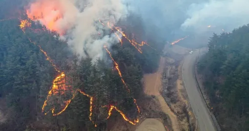 Požar u Uiseongu, samo 68 posto obuzdan i pogoršan olujnim vjetrovima, pokazuje "nezamislive" razmjere i brzinu, kazao je Lee Byung-doo, stručnjak za šumske katastrofe pri Nacionalnom institutu za šumarske nauke.